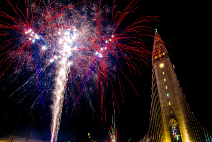 Рейкьявик. Исландия часто занимает верхние позиции в рейтингах стран для зимних путешествий. Не стала исключением и встреча Нового года. Жители этой сказочной суровой страны отмечают первый в году праздник весело и очень шумно. Местные жители верят: чем больше шума, тем больше удачи будет в новом году. На главной площади Рейкьявика разжигается огромный костер, вокруг которого происходят массовые празднования. Лучшие виды на праздничный салют, который организуют сами жители, открываются с площади церкви Hallgrímskirkja, а также с холма Skolavörðuholt.