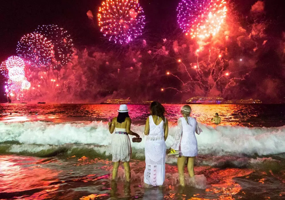 Рио-де-Жанейро. Хотите отпраздновать Новый год зажигательно? Отправляйтесь в жаркую Бразилию. Главной новогодней площадкой страны становится Рио-де-Жанейро. Со всей страны люди стекаются именно в этот город, а точнее на знаменитый пляж Копакабана. Бразильцы перед началом Нового года одеваются во все белое и приходят к берегу океана. Они приносят с собой дары покровительнице всех моряков и путешественников, богине моря Иеманже. На небольших лодочках со свечами и цветами люди размещают рис и сладости и отправляют их вглубь океана - так они пытаются задобрить суровую богиню, чтобы весь следующий год все, кто уйдет в море, вернулись целыми и невредимыми.