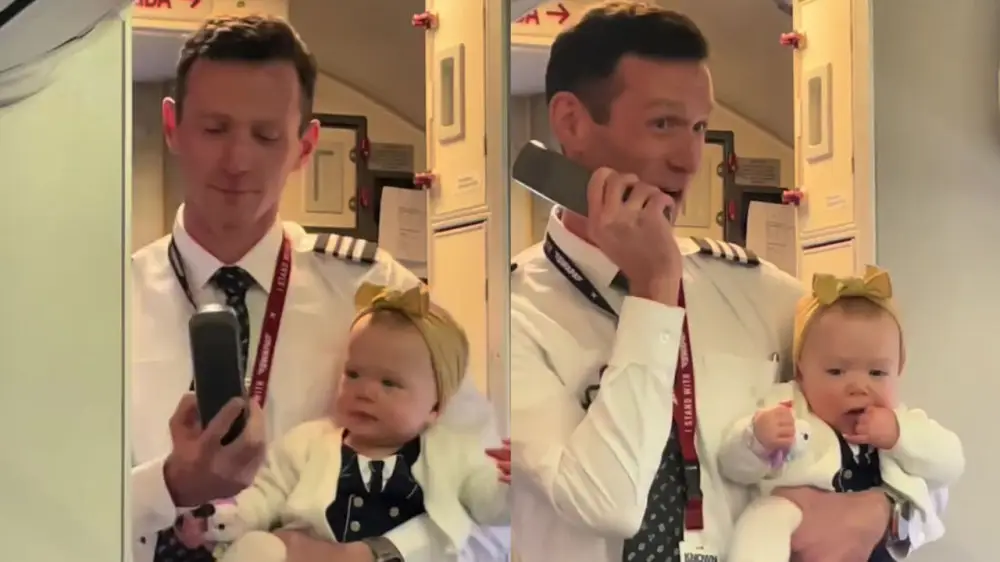 Видео, в котором пилот авиакомпании Southwest Airlines произносит трогательную речь со своей маленькой дочерью на руках, собрало почти 10 миллионов просмотров и вызвало восторг у пользователей социальных сетей, передает Tengri Travel.