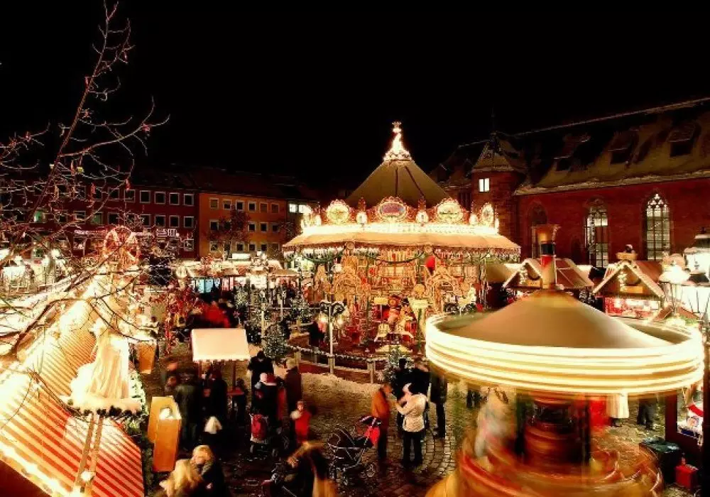 Рождественский базар в Нюрнберге проводится с 1628 года и считается крупнейшим в Европе. Ежегодно базар на главной торговой площади города посещают два миллиона человек. Гостей встречают знаменитыми нюрнбергскими пряниками, колбасками и глинтвейном. Сувенирные лавки увешаны щелкунчиками и елочными шариками, один другого ярче. На Ратушной площади продают изделия народных промыслов. Работает каток. Вечером можно поучаствовать в шествии с фонариками через весь город или прокатиться в старинной почтовой карете.