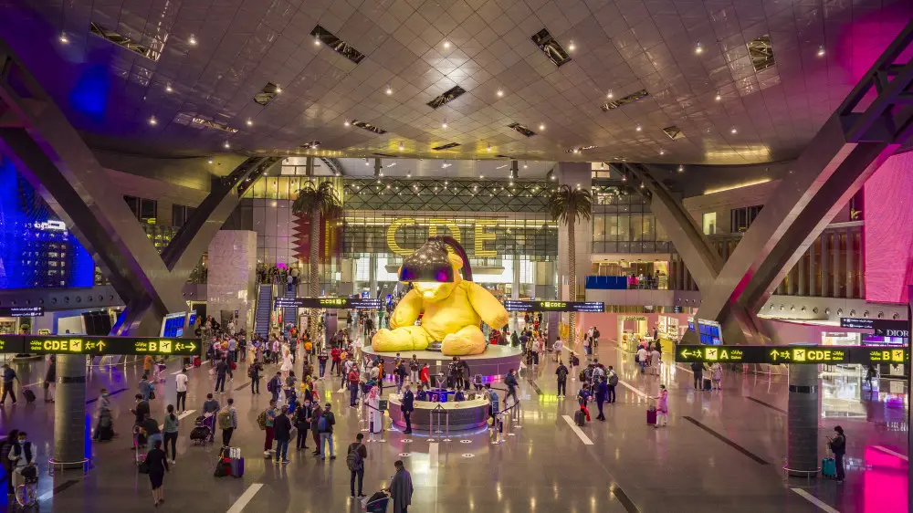 В пассажирском терминале, который является самым большим зданием в Катаре, установлена огромная арт-инсталляция – гигантская бронзовая статуя плюшевого медведя с головой в лампе. Скульптура, известная как "Ламповый медведь", является одним из трех творений швейцарского художника Урса Фишера. Статуя имеет высоту семь метров и вес около 18-20 тонн. Помимо желтого медведя, здесь установлена "Маленькая ложь" (Small Lie) американского скульптора Брайана Доннелли, известного также как KAWS.