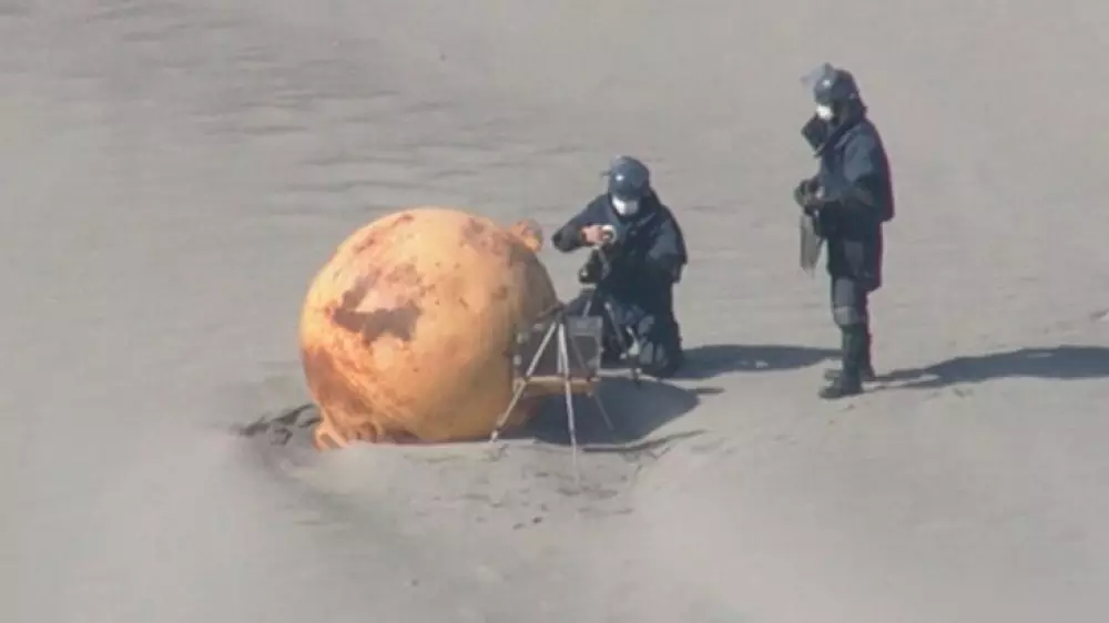 Подозрительный шар на побережье префектуры Сидзуока в районе города Хамамацу нашла местная жительница, которая и сообщила в полицию.
