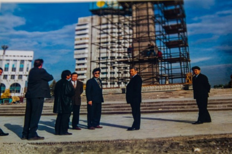 "Мы начали работу где-то в мае 1996 года. На площади вырыли котлован, заложили фундамент. Установили мощный железобетонный каркас, который устремлен ввысь и еще уходит на 10-12 метров под землю, чтобы монумент стоял на века и держался и во время землетрясений, и во время ураганов. Вокруг этого каркаса с четырех сторон ставили гранитные камни", - вспоминает Болат Сауранбаев.