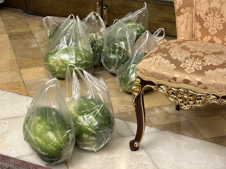 Иранцы на прощание вручают гостям арбузы. Вот такой саркыт из Тегерана.
