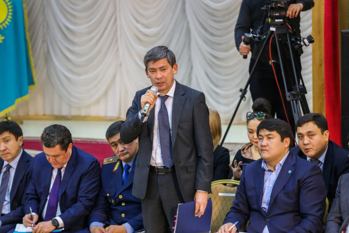 Чтобы разрядить обстановку в зале, аким Алматы иногда как будто старался шутить.