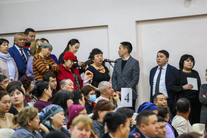 После традиционного отчета районного акима микрофон передали жителям для вопросов.