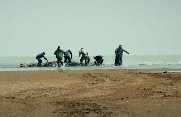 Процесс отлова тюленей для исследований. Кадр из видео Института гидробиологии и экологии.
