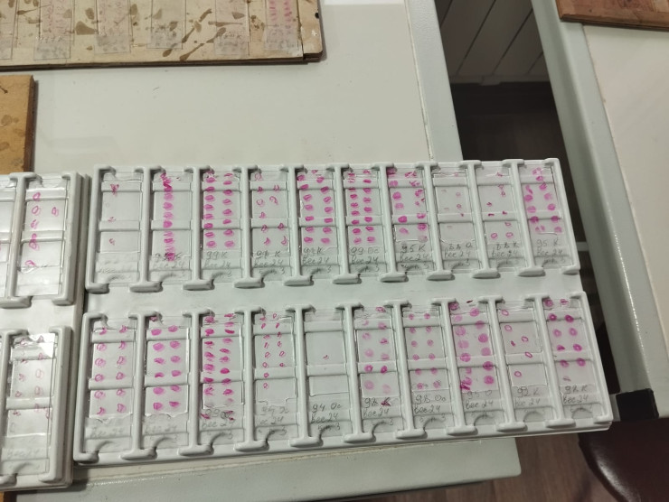 Раньше, говорит Миргалий Баймуканов, рацион питания тюленей определяли путем забоя особей. Животное убивали, вскрывали желудок и изучали его содержимое. Сейчас специалисты института применяют более гуманный способ определения питания. Ученые собирают на лежбищах фекалии тюленей, привозят в свою лабораторию, сушат, промывают и изучают.