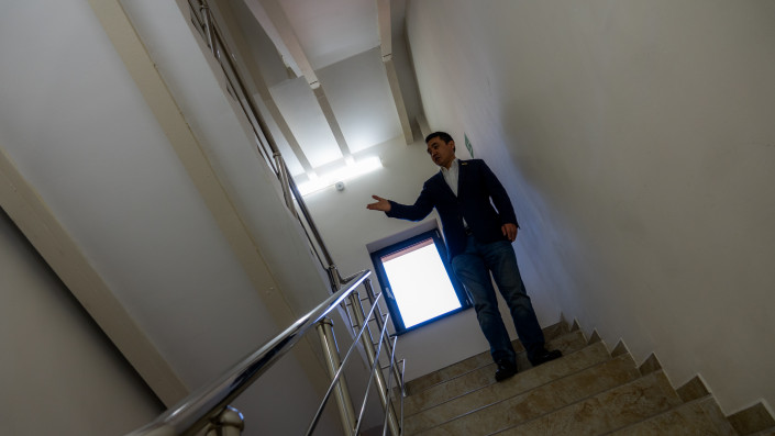 "Ваша сделана из металлических конструкций, ступени - бетонные. Это соответствует стандарту. Как правило, в течение двух-трех минут после первого сильного толчка у людей есть время покинуть здание. Главное, чтобы не было паники. Для этого рекомендую регулярно участвовать в сейсмотренировках. Знать, как и что делать - это одно, а сориентироваться в действительно критической ситуации можно, только имея отточенные навыки", - поясняет управляющий директор КазНИИСА по производству, кандидат технических наук Ералы Шокбаров.