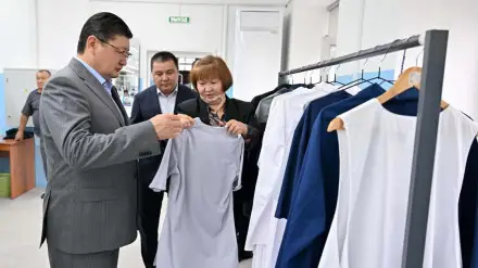 Но и это ещё не конец. В тот же день он побывал на местной швейной фабрике, которая выпускает корпоративную, медицинскую и другую спецодежду — до 140 тысяч готовых изделий в год. Аким области Абай, как водится, внимательно осматривался и с интересом разглядывал, как всё устроено.