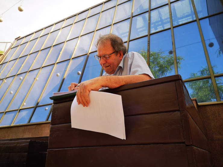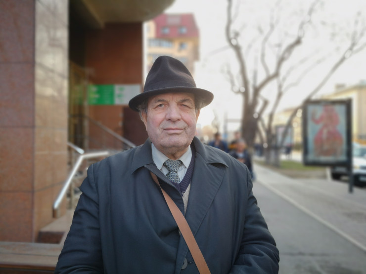Этот интеллигентного вида человек - поэт и писатель Олег Дмитриевич Рябуха. Впрочем, себя он называет коллекционером профессий: чем он только не занимался в прошлом. Перед тем как выйти на пенсию, он 17 лет проработал учителем русского языка и литературы в алматинских школах.