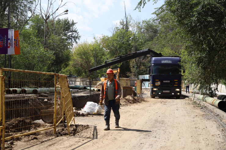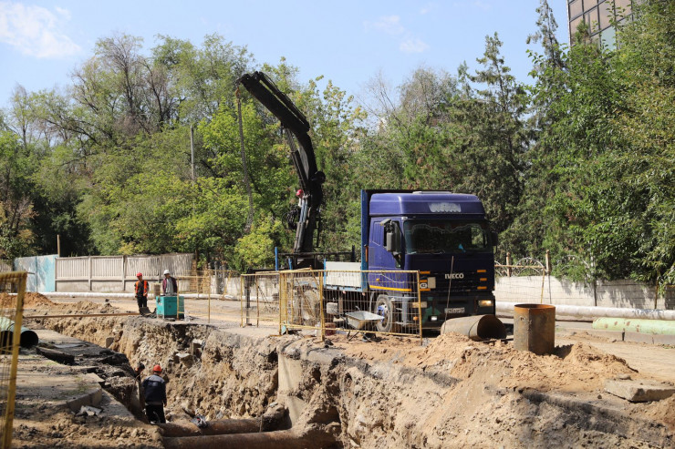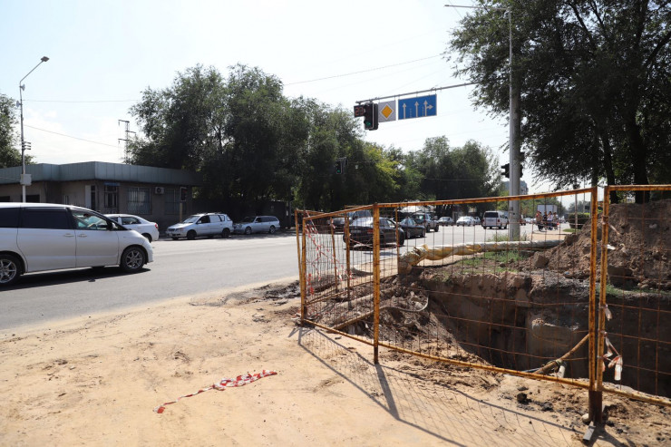 Сначала речь пойдет об улице Кажымукана. Здесь до сих пор прокладывают новые трубы под трассой.