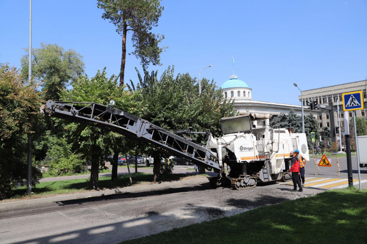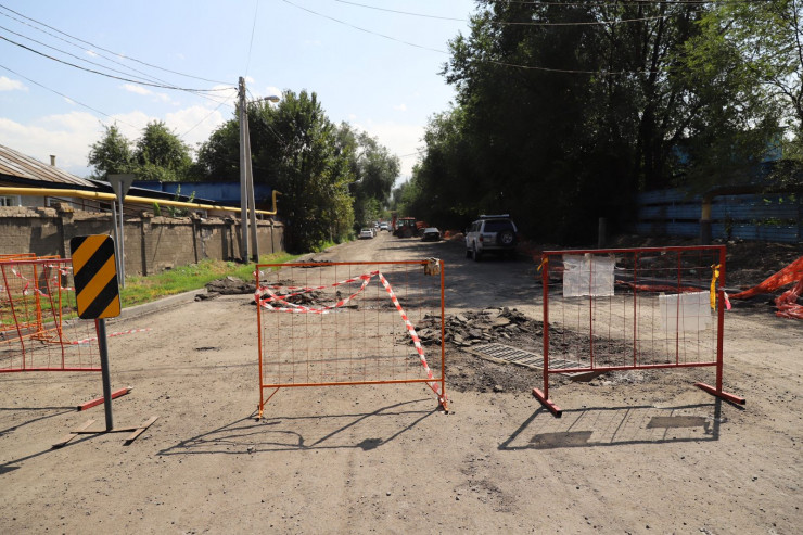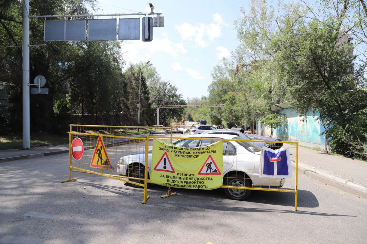 По улице Макатаева в районе пересечения с улицей Жумалиева тоже перекрыто движение. Асфальт здесь пока не уложили, но работы ведутся.
