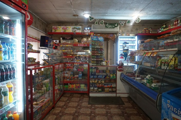 Внутри магазина по прежнему можно заметить наклейку с лозунгом партии "Асар".