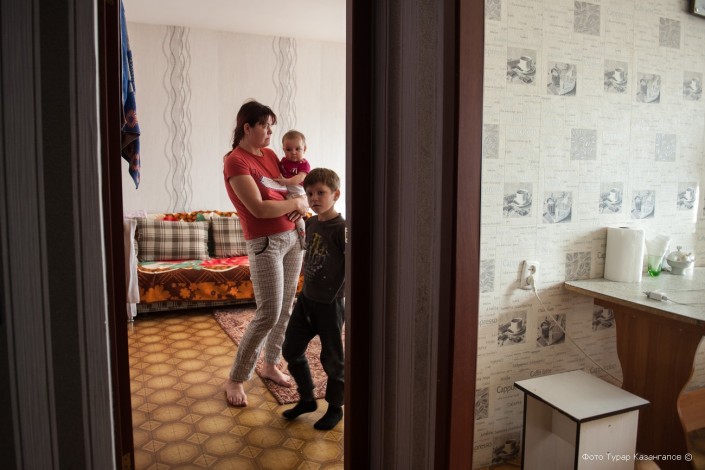 "К нам в вагончик приезжал аким района Байконур. Он сказал, что сейчас морозы и надо снять квартиру. Я нашла квартиру, заплатила залог 10 тысяч тенге, удостоверение личности оставила, и 3-го числа мы сюда заехали. Приехал помощник акима, оставил 80 тысяч. Хотя за квартиру надо 110. Остальное придется самим добавить с детских пособий", - говорит Ирина.