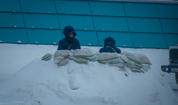 Да, есть понимание, что в столице все еще действует режим ЧП, и вроде надо уже привыкнуть к военной технике, колючей проволоке и вооруженным людям вокруг и внутри административного центра, но все равно выглядит это каждый раз непривычно.
