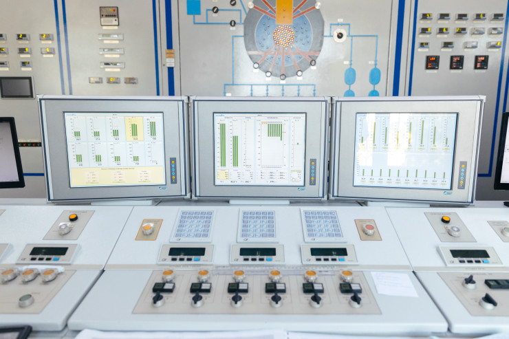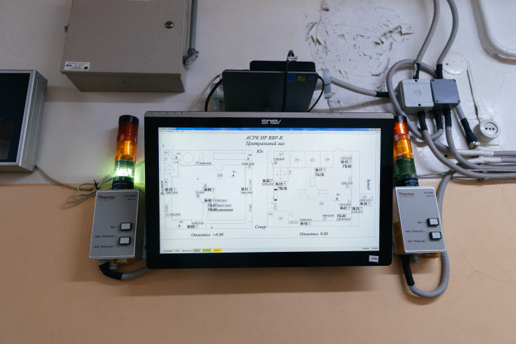 А это святая святых. По сути, "мозг" реактора. В 2016 году пульт управления реактором был полностью обновлен. Оператор ведет круглосуточное наблюдение за его работой. Три монитора отображают все ключевые процессы. Кроме того, на объекте есть резервный пульт управления с дополнительным монитором, который позволяет управлять реактором даже в случае чрезвычайной ситуации.