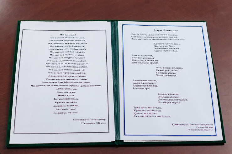 - На Новый год один аксакал, ему 98 лет, написал стих и отправил мне. Я его храню в кабинете. В прошлый раз мы были на открытии байги, другой аксакал сказал мне персональный бата, написал его на листочке и вручил мне.