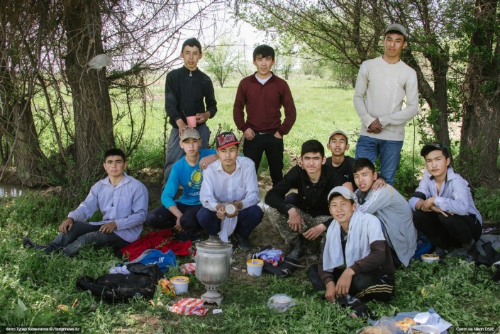 В тот же день мы увидели длинные накрытые столы с едой, расставленные вдоль улицы - местные все еще праздновали Наурыз. Так здесь положено: сначала одна улица накрывает дастархан, на следующей неделе - другая. Завидев нас, журналистов из столицы, местные жители тут же усадили нас за стол и накормили ароматным рассыпчатым пловом.