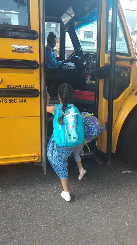 Тех, кто добирается в школу самостоятельно, на заднем дворе школы ждут дежурные или помощники учителей с указателями классов. Двор огорожен забором и закрывается на ключ. В школу родителей не пускают, собирают деток и заводят внутрь школы, дверь закрывается на ключ. А для ребят, которые ездят на школьном автобусе, вообще все еще проще. Вышел из дома, сел в автобус и поехал. В школе есть специальный дежурный, который встречает детей из автобуса и сопровождает в школу. Отмечу, что школьный автобус бесплатный. Забирают с ближайшей к дому остановки. Отводит к автобусу и встречает родитель или кто-то из родных. Если, к примеру, нет встречающего, то автобус не выпустит ребенка одного. Его обратно заберут в школу. По пути водитель звонит родителям. Если они не отвечают, то тогда звонят в полицию.