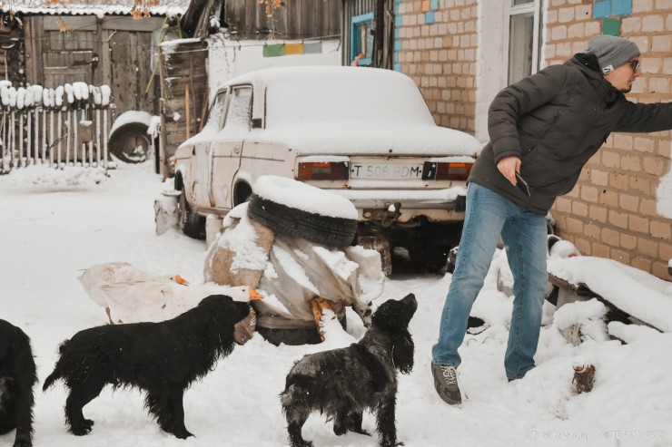 Дом, в котором она живет вместе с супругом, охраняют не только три спаниеля, но и два очень голосистых гуся. Стучимся в окно, однако нет никаких сомнений, что о нашем присутствии уже знают. В это время животные-секьюрити едва не хватают за джинсы.