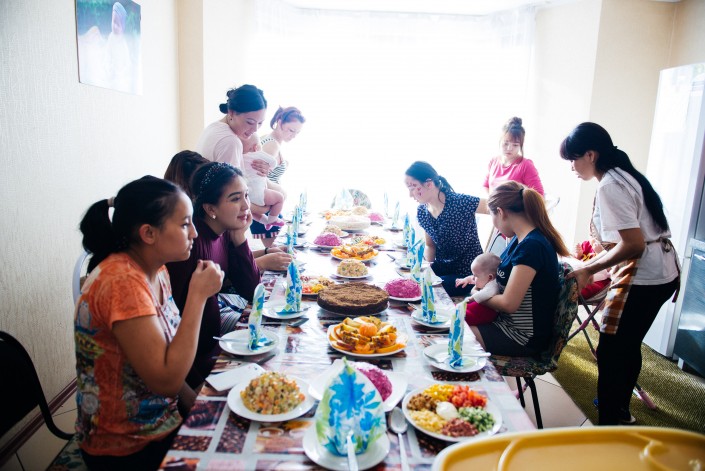 "Слышали? Асия повышение получила..." Асия - это бывшая подопечная "Дома Мамы". Прожив здесь около года, она переехала на съемную квартиру и начала самостоятельную жизнь. По правилам мамы могут находиться здесь вместе с ребенком в течение года.