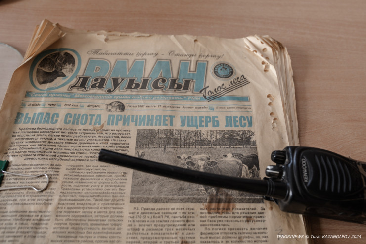 "Пограничники, в случае чего, докладывают нам, что в лесу кто-то подозрительный, может, браконьер. Так и мы, если замечаем, сообщаем им о возможных нарушителях границы", - говорит Серикбек Жумашевич.