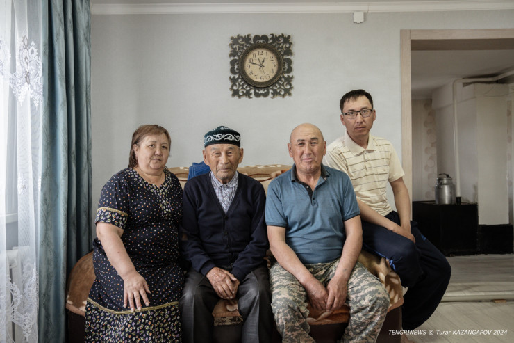 Прогулявшись по селу, мы зашли в гости к местному аксакалу и труженику тыла Тарыбаю Кузеубаеву. У него, к слову, 29 правнуков, 16 внуков и семеро детей.