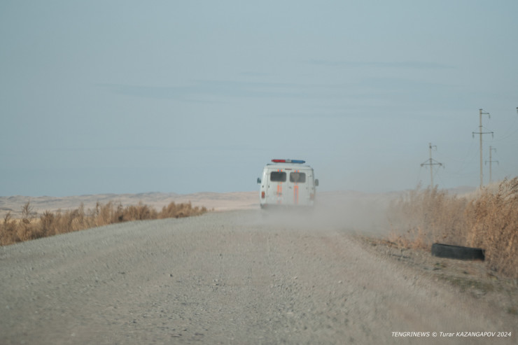 По дороге в сторону села Теректы наш автомобиль обгоняет машина спасателей.