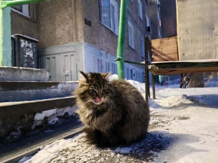 Соседский или уличный кот, видимо, тоже долго ждет, когда ему откроют дверь.