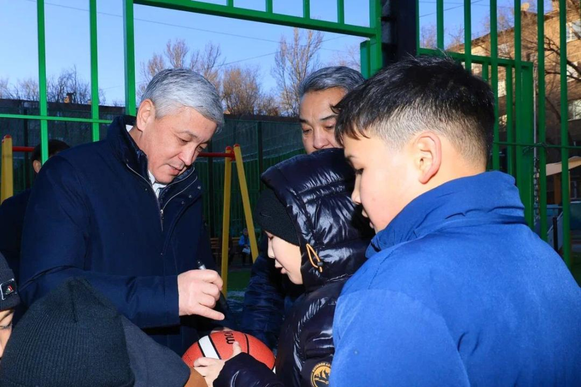 Но интереснее всего кадры, на которых Булекпаев раздаёт автографы детям, игравшим на местной спортивной площадке.