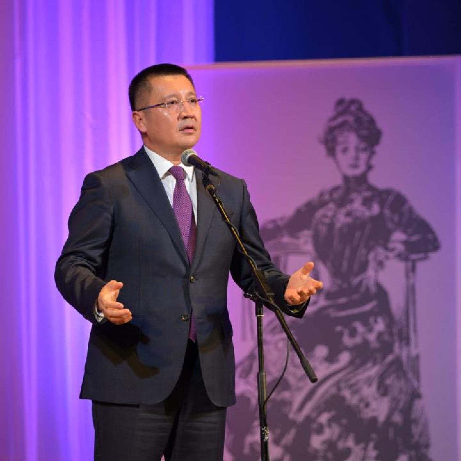 Аким лично поздравил всех причастных и выступил с торжественной речью. Обратите внимание, какой кадр получился — будто он сам играет на сцене.