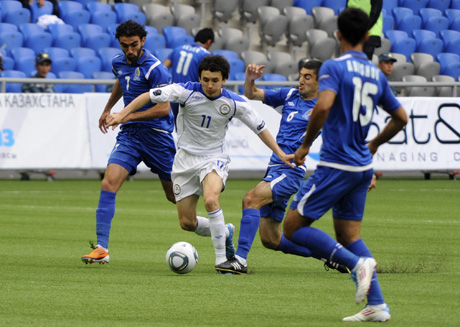 Момент матча Казахстан - Азербайджан. Фото REUTERS/Stringer Russia
