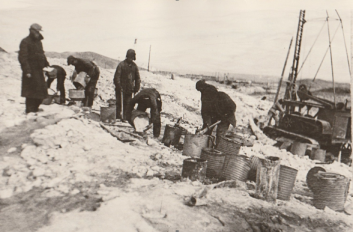 Коунрад, конец 1930-х годов. Заряжение взрывных скважин