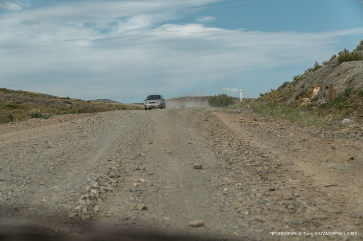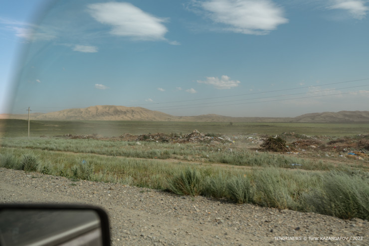 Асфальт заканчивается в селе Маркаколь. Далее практически на всем пути гравийка. Первым делом путников встречает местная свалка, раскинувшаяся в степи рядом с селом.