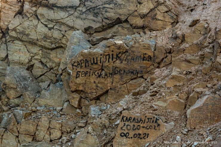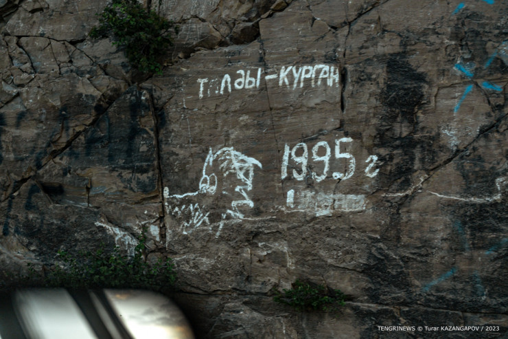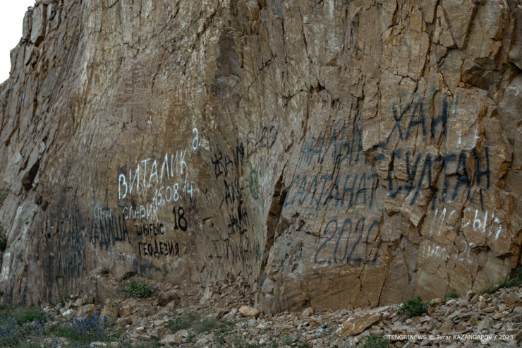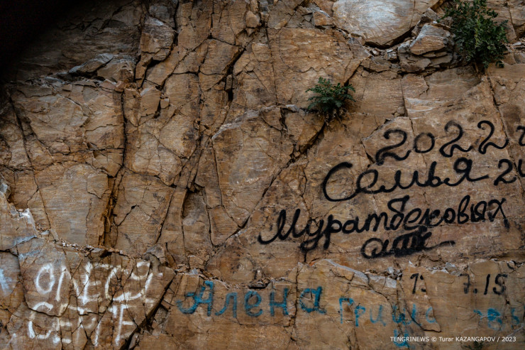 А это уже наскальное творчество местных жителей. Если некоторые даты - это не годы рождения, то можно предположить, что приезжают в эти края туристы не один десяток лет... а асфальта все нет.