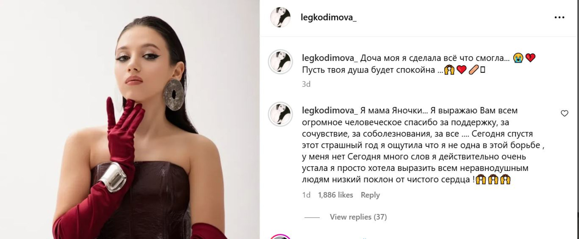 После того как всё закончилось, Галина написала на своей странице в Инстаграме, где раньше делилась достижениями Яны: