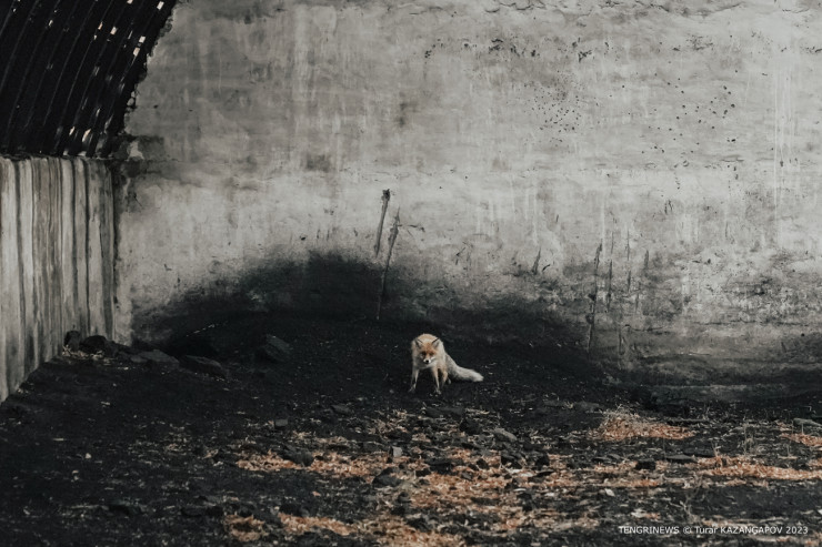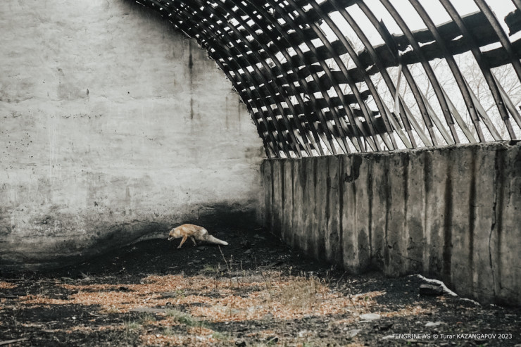 Базы постепенно разбирают. В одном из бывших помещений крестьянского хозяйства мы заметили раненую лисицу.