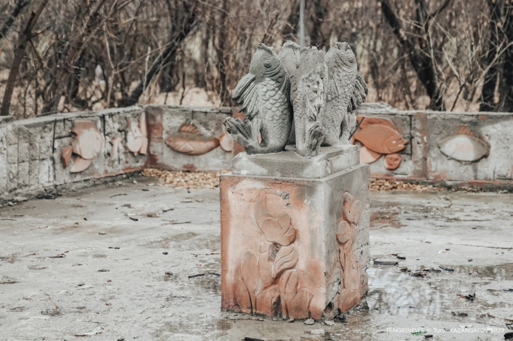 Рядом с ней расположился старый неработающий фонтан. Будет ли он когда-нибудь вновь радовать сельчан журчанием воды, неизвестно.