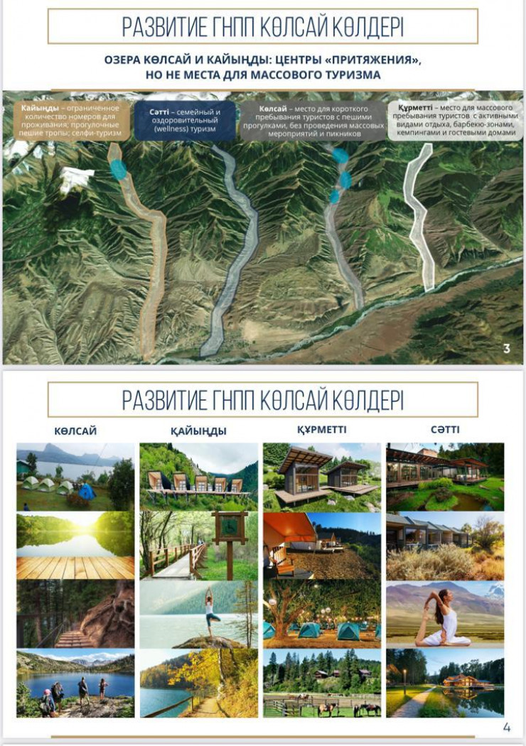 Что касается "Көлсай көлдері", то, учитывая, что этот нацпарк особенно хрупкий и к нему надо внимательно относиться, Министерство экологии и природных ресурсов как его владелец и балансосодержатель проводит очень осторожную политику с поиском инвестора и распределением земель, которые определены под туристские нужды.