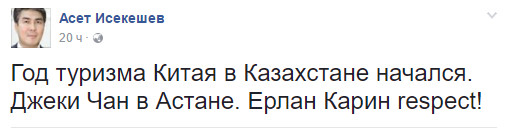 Ранее Ерлан Карин рассказывал, как ему удалось организовать приезд звезды мировой величины в Астану. И аким столицы Исекешев, по всей видимости, по достоинству оценил работу главы телеканала "Казахстан".