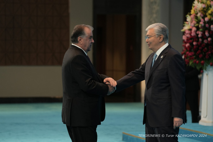 Таджикский лидер Эмомали Рахмон тепло здоровается с Касым-Жомартом Токаевым. Как ранее рассказывал Президент Казахстана, их связывает настоящая дружба.