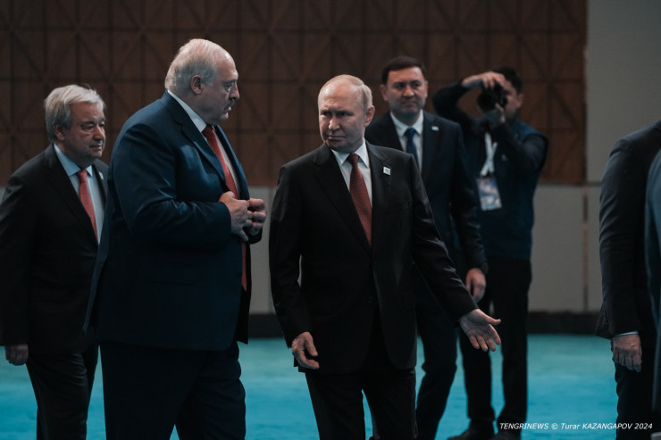 Затем Лукашенко присоединился к Владимиру Путину. Рядом с ними можно заметить генерального секретаря ООН Антониу Гуттериша.