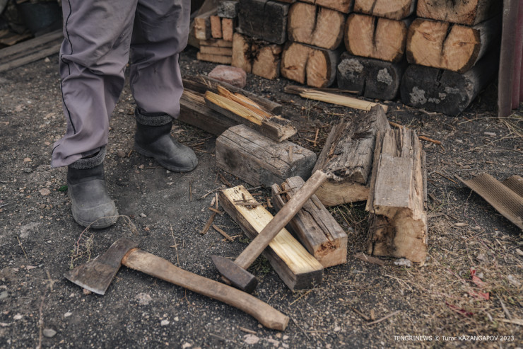 Это Владимир Вильковский, его мы застали за заготовкой дров на зиму.