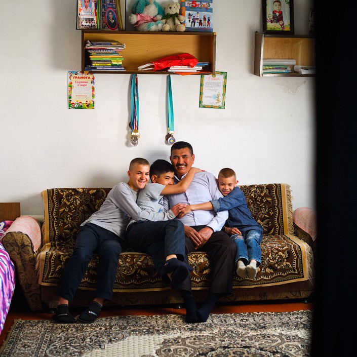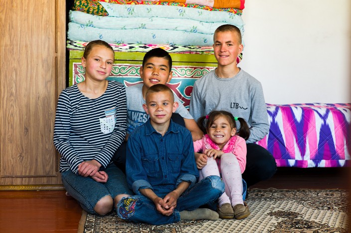 На фото в центре родной сын Жадыры - Айбол. Ему 12 лет. Справа от него 14-летний Дима. Мальчика 12 раз брали в приемную семью, но потом снова возвращали в детский дом. Только в доме Кыдырбаевых Дима обрел настоящую семью.