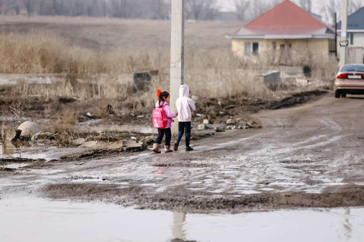 "Дети учатся в три смены. Первоклассников и второклассников мы отправляем на частных автобусах. За ребенка платим 10 тысяч тенге в месяц. Третья смена заканчивается после 7 вечера. С работы приходим, сразу идем встречать, так как переживаем за детей: темно, тут бродят собаки, много новостроек, интенсивное движение, а дороги, сами видите, какие".