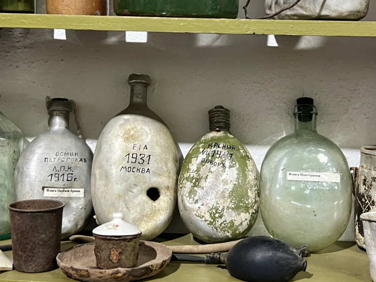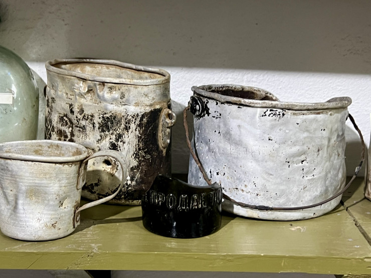"Быт у немцев был отлично налажен. Вот посмотрите - крема, средства ухода, зубные пасты и зубные щетки с щетиной из дикого кабана, даже крем для обуви. Бальзамы, шампанское, вина, ликеры… Все праздники на широкую ногу отмечали. Пепельницы, австрийские зажигалки, губные гармошки… Или вот - пластмассовая коньячная рюмочка, ее подняли с двухметровой глубины. Педантично так все у них...