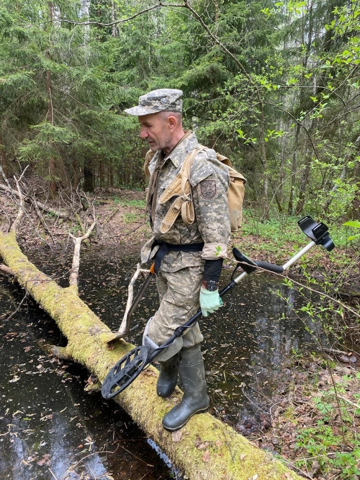 "Солдат ведь без железа не бывает: ремни, ложки, каски, котелки, фляжки, кружки, катушка связиста, винтовка, ложка… Даже если этого нет, то "цепляемся" за осколки или пули, от которых погиб боец. Запищал металлоискатель, потом копаем. Примерно часа два уходит, что откопать одного солдата. Бывает, что деревья прорастают через человека. Сейчас мы валим эти деревья, чтобы поднять бойца и найти медальон", – говорит поисковик.