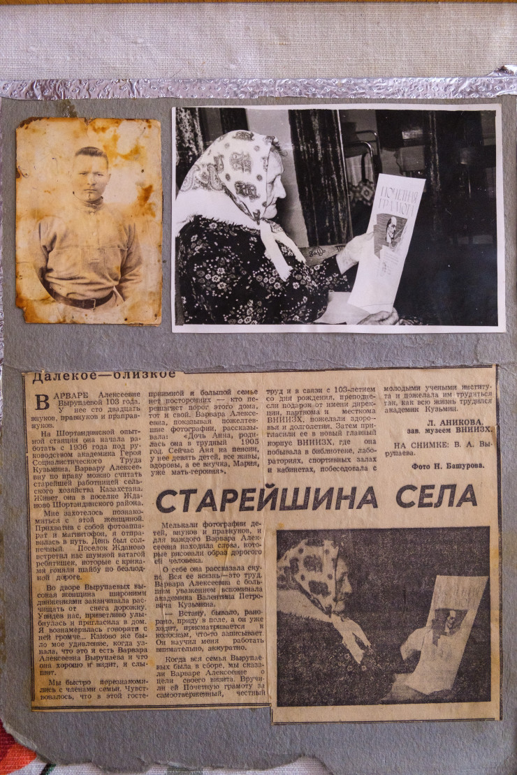 "В 1945 году Кузьмин вывел сорт пшеницы "Акмолинка-1", этот сорт был неприхотливый, зимостойкий, что необходимо в наших северных условиях, у него мощная корневая система, и этот сорт дал высокий урожай, так что в 1946-1947 годы люди вдоволь наелись хлеба, страна была спасена от голода, а это же были послевоенные годы, полнейшая разруха была", - говорит заведующая музеем.