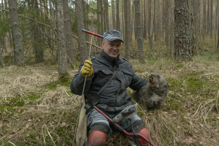 На поиски Андрей выезжает не один, а вместе со своей преданной собачкой Ютой.
